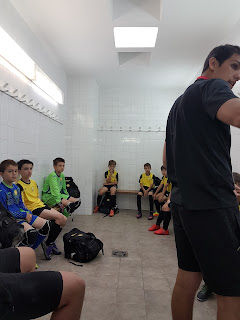 El primer cuarto empezamos bien colocados hasta que a los 4 minutos con chute de fuera del área los rivales anotaron el primer gol ,después de meter el primero se vinieron arriba y no cesaron los ataques durante todo el partido,nosotros intentamos defender como pudimos pero fueron muy superiores y durante el partido nos metieron 9 goles pese a ir perdiendo durante todo el partido en ningun momento la perdimos la cara al partido y intentamos salir siempre con pases y el balon controlado . Pese al resultado muy contento con el equipo,la evolución y el esfuerzo que hacen partido tras partido.
